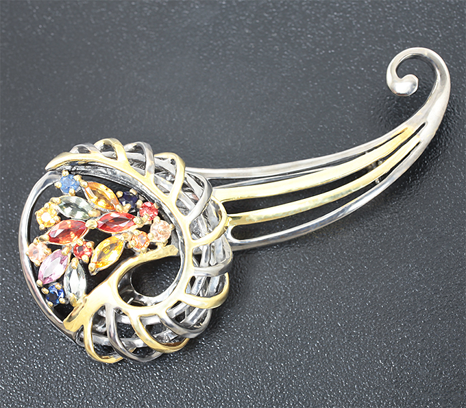 Лот № ea-2883 Серебряная брошь с разноцветными сапфирами! Материал: Серебро 925 Вес изделия: 16,1 грамм Размер: 66 х 32 мм Вашему вниманию предлагается брошь из стерлингового серебра (925 проба) c разноцветными сапфирами! Изделие с чернением и частичной позолотой. Размеры вставок 3 мм и 6 х 3 мм. Площадка 66 х 32 мм. Вес изделия 16,1 г. Возможно, в продаже есть другие Броши Сапфир, воспользуйтесь поиском по сайту. Броши All Exclusive JewelryОтзывы покупателей Подобные лоты в продаже ![]() Проданные лоты