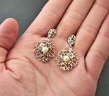 Серебряные серьги с жемчугом, голубыми топазами и синими сапфирами