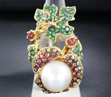 Серебряное кольцо с жемчужиной, цаворитами и разноцветными сапфирамиВыставка-продажа // K&N GEMS // Кольца