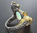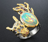 Серебряное кольцо с топовым эфиопским опалом и оранжевыми сапфирами