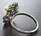Серебряное кольцо с эфипоским опалом, сапфирами и цаворитами