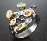 Серебряное кольцо с эфиопскими опалами и разноцветными сапфирами