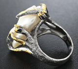Серебряное кольцо с жемчужиной барокко и сапфирами