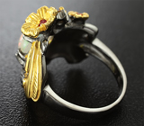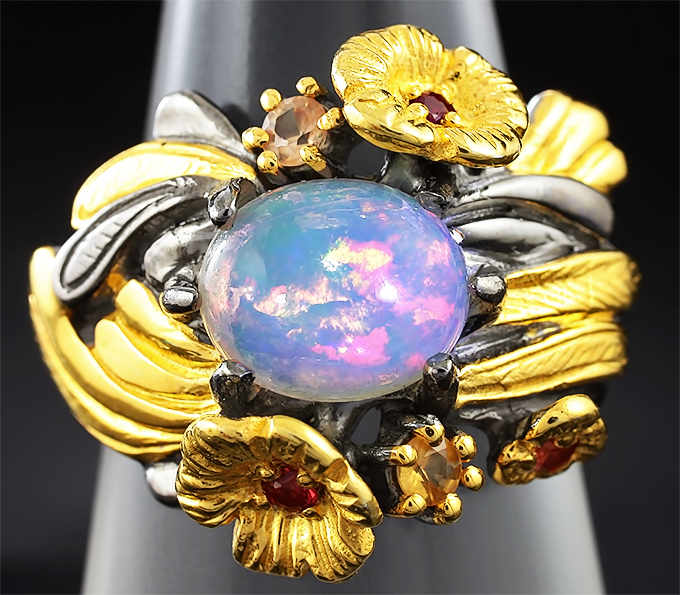 Серебряное кольцо с эфиопским опалом и сапфирами