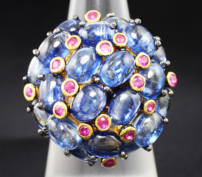 Серебряное кольцо с синими и пурпурными сапфирамиВыставка-продажа // K&N GEMS // Кольца