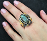 Серебряное кольцо с лабрадоритом и синими сапфирами