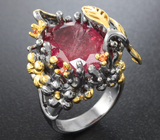 Серебряное кольцо с рубеллитом и оранжевыми сапфирами