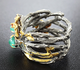 Серебряное кольцо с изумрудами 2,51 карат, родолитом и оранжевыми сапфирами