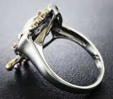Серебряное кольцо с кристалллическим эфиопским опалом, цаворитами и сапфирами