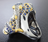 Серебряное кольцо с жемчужиной барокко, синими сапфирами и цаворитами