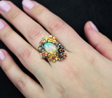 Серебряное кольцо с топовым эфиопским опалом и сапфирами