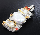 Серебряный кулон с жемчужиной барокко и сапфирами