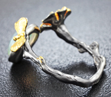 Серебряное кольцо с кристаллическим эфиопским опалом и сапфиром