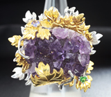 Серебряное кольцо с друзой аметиста, танзанитом и цаворитом