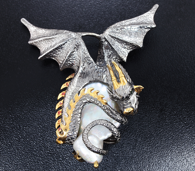 Серебряный кулон «Дракон» с жемчужиной барокко