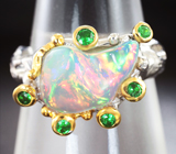 Серебряное кольцо с кристаллическим эфиопским опалом и цаворитами