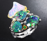 Серебряное кольцо с эфиопскими опалами 6,54 карата и цаворитами