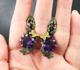 Серебряные серьги с уругвайскими аметистами 11,6 карата и цаворитами