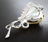 Серебряная брошь с жемчужиной барокко 36,18 карата, насыщенно-синим топазом и синими сапфирами
