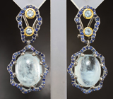 Серебряные серьги с аквамаринами 30,9 карата и синими сапфирами