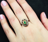 Серебряное кольцо с изумрудом высоких характеристик и сапфирами
