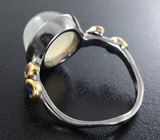 Серебряное кольцо с лунным камнем 6,65 карата с эффектом кошачьего глаза и синими сапфирами
