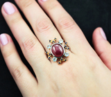 Серебряное кольцо с рубином 6,38 карата, голубыми топазами и синими сапфирами