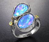 Серебряное кольцо с ограненными черными опалами 4,85 карата и цаворитами