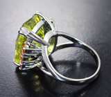Серебряное кольцо с лимонным цитрином лазерной огранки 12,88 карата, розовыми и оранжевыми сапфирами