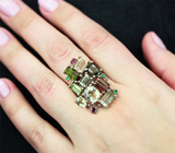 Серебряное кольцо с разноцветными турмалинами различных огранок, родолитами и цаворитами