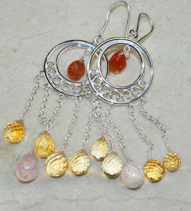 Серьги с бриолетами розового кварца, цитринов и малайа гранатов!Магазин // Kristy Patterson // Серьги