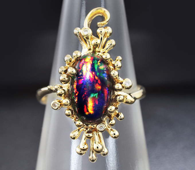 Золотое кольцо с кристаллическим черным опалом 2,15 карат и бриллиантами!Магазин // Эксклюзив золото // Кольца
