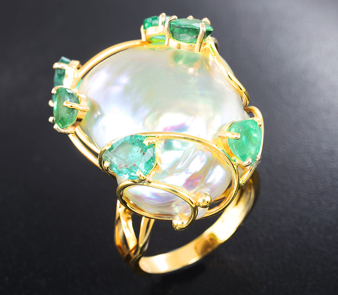 Золотое кольцо с морским жемчугом барокко 41,84 карата и изумрудами!Магазин // Эксклюзив золото // Кольца