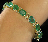 Лот № ex-095 Браслет с изумрудами! Материал: Золото Вес изделия: 20,01 грамм Размер: 175 мм Вашему вниманию предлагается браслет из 14-каратного золота (585 проба) с бриллиантами и изумрудами! Размеры изумрудов от 8,5 х 6,7 мм до 9 х 7 мм. Длина браслета 175 мм, ширина 8 мм. Вес украшения 20,01 г. На изделие имеется российский сертификат. Экспертная оценка $7102. Ниже приводятся ювелирные характеристики вставок.