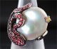 Кольцо высокое! И на этом высоком кольце сидит в паутине с зелёным отливом пушистый паук, держащий своё яйцо в виде жемчужины! В паутине красно-бордовые родолиты напоминают, что красавец паук хищник, у которого осталась кровь мух и комаров на паутине. Смотрится одновременно зловеще и красиво! Благодарю менеджера Элю, и всех работников магазина за необычное кольцо!